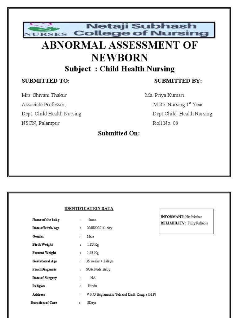Postnatal : Baby birth weight is around 1.8 kg. No history of drugs given to the baby immediately after birth. But baby was on