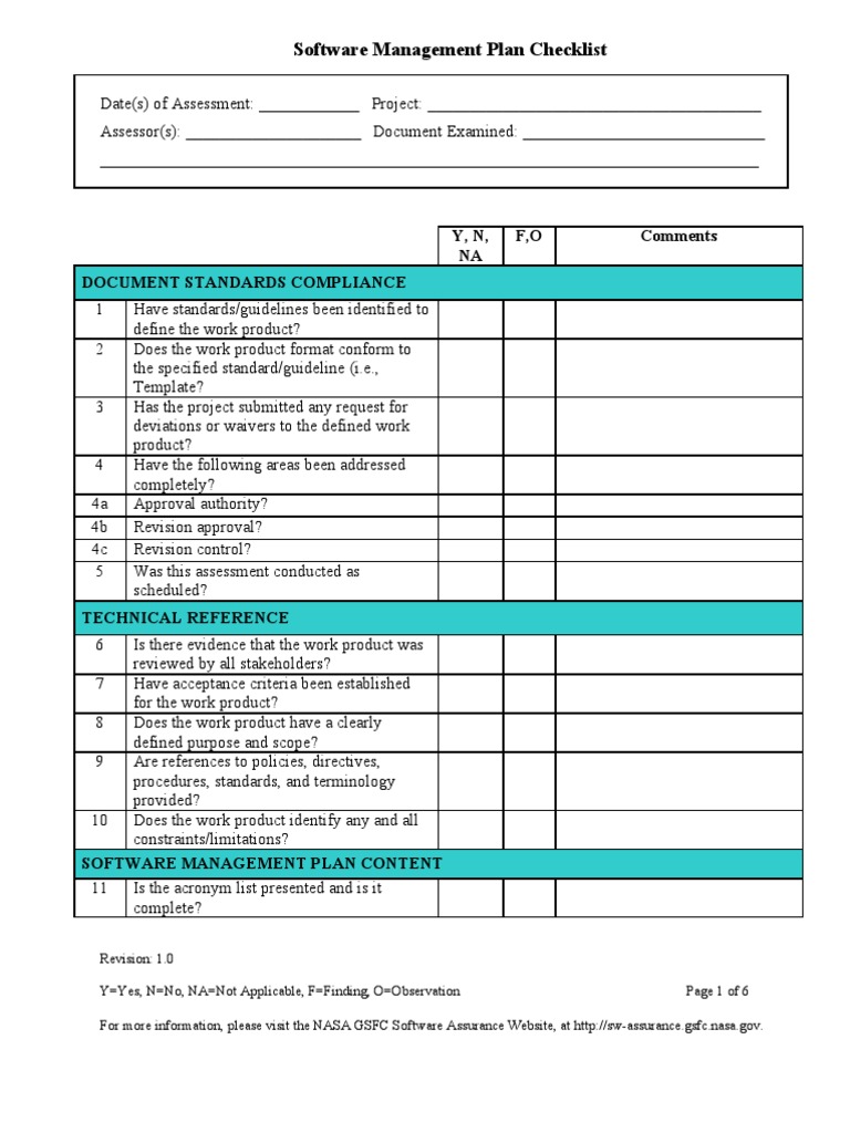 Software Management Plan Checklist