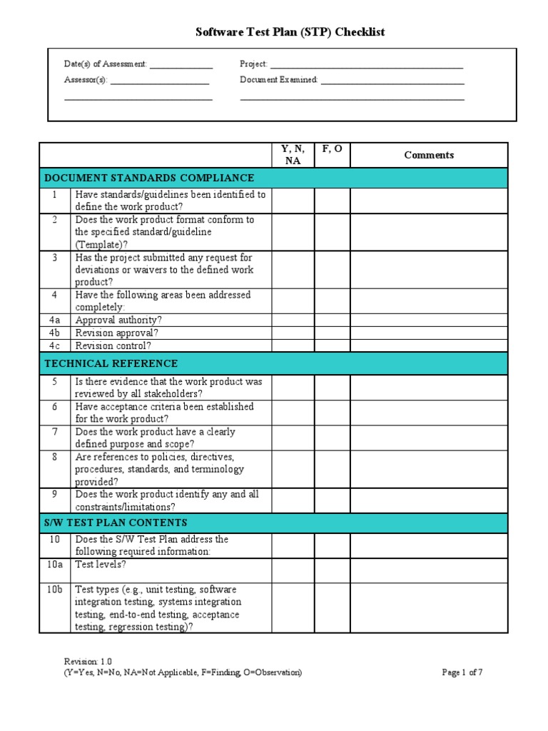 (Y=Yes, N=No, NA=Not Applicable, F=Finding, O=Observation) Page 1 of 7
