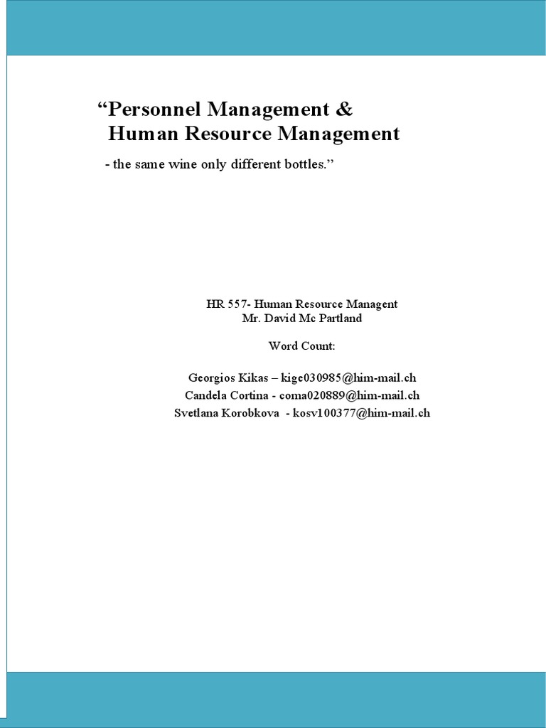 Personnel Management & Human Resource Management: - The Same Wine Only Different Bottles.