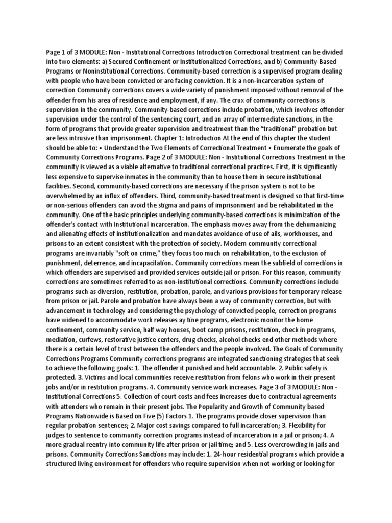 investigation, trial, or on appeal. Page 3 of 9 MODULE: Non - Institutional Corrections 3. Any person in