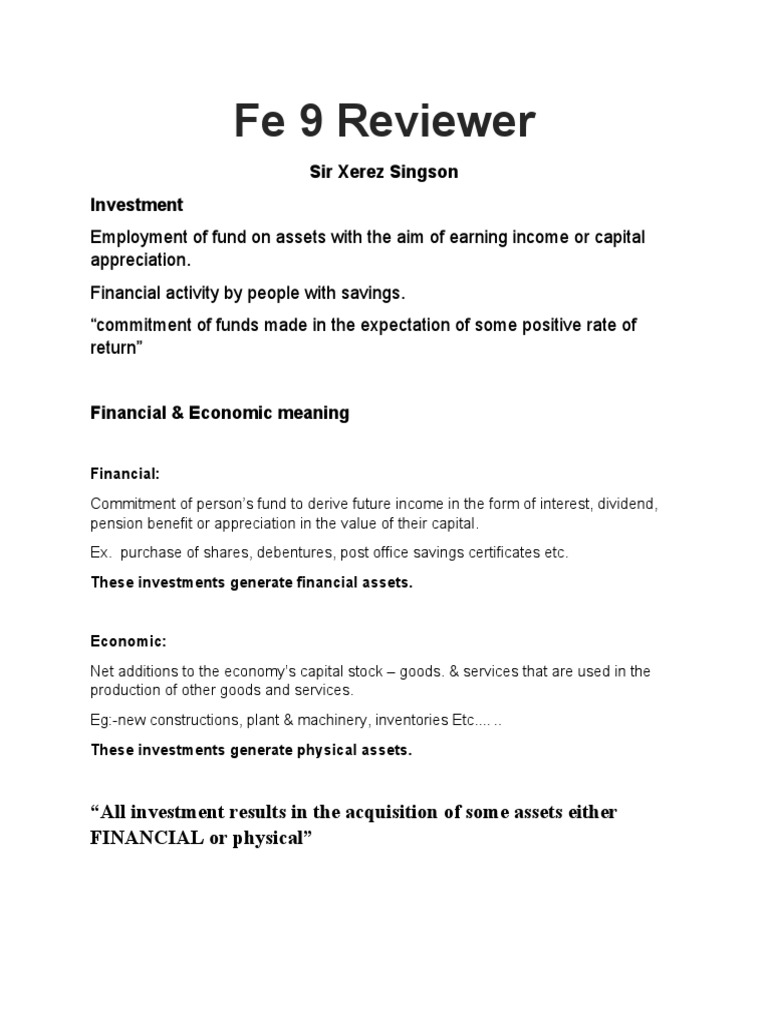 Commitment of person’s fund to derive future income in the form of interest, dividend,