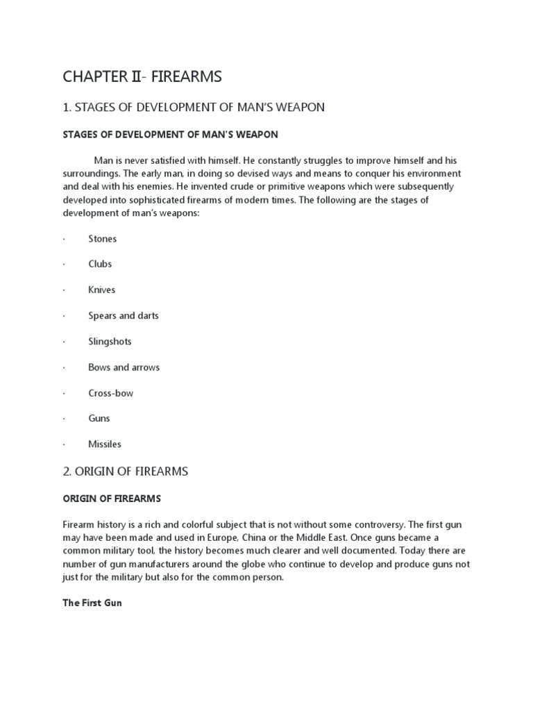 Chapter Ii-Firearms: 1. Stages of Development of Man'S Weapon
