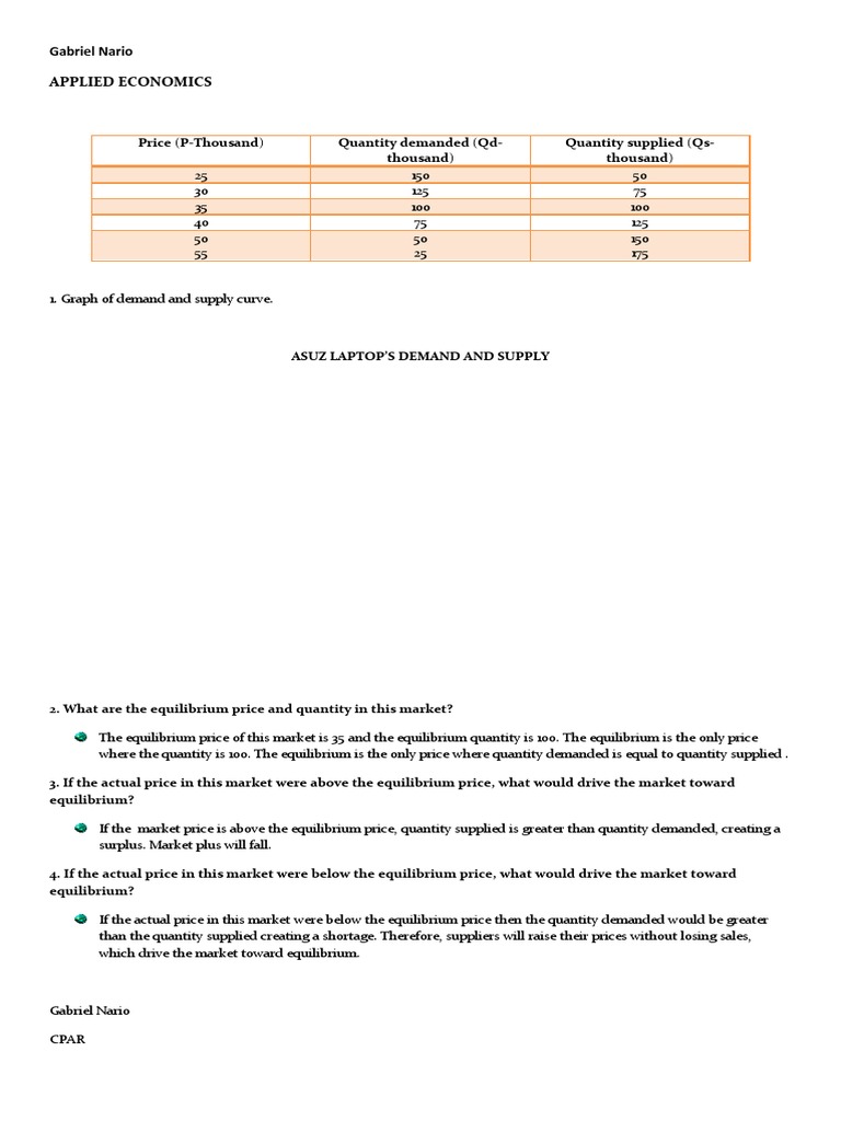 4. If the actual price in this market were below the equilibrium price, what would drive the market toward