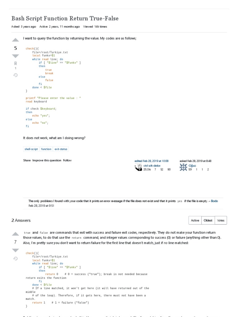 empty file that you have access to, the true and false calls, since they are the last commands to be executed in the function, sets