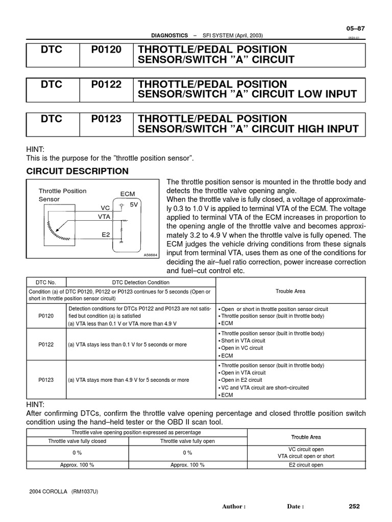 DTC P0120 THROTTLE/PEDAL POSITION