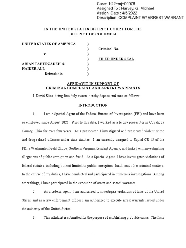 CRIMINAL COMPLAINT AND ARREST WARRANTS