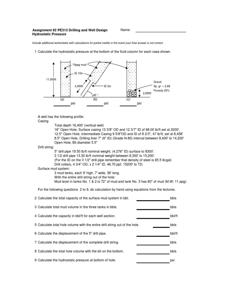 Assignment #2 PE313 Drilling and Well Design Name: