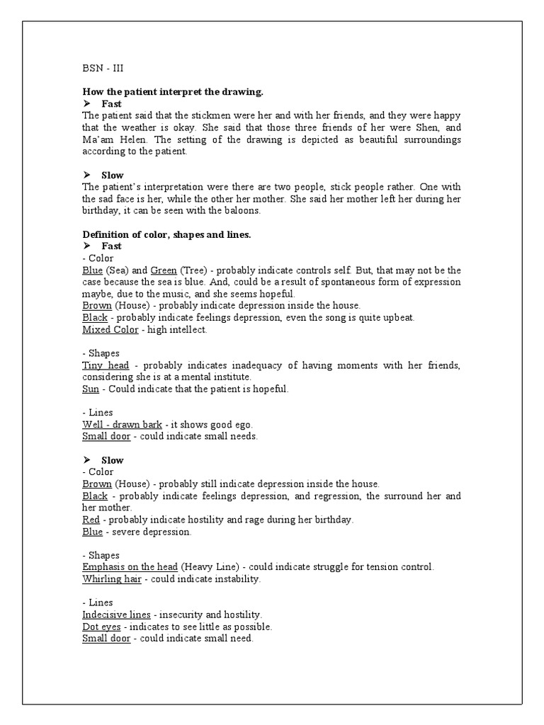 How the patient interpret the drawing.