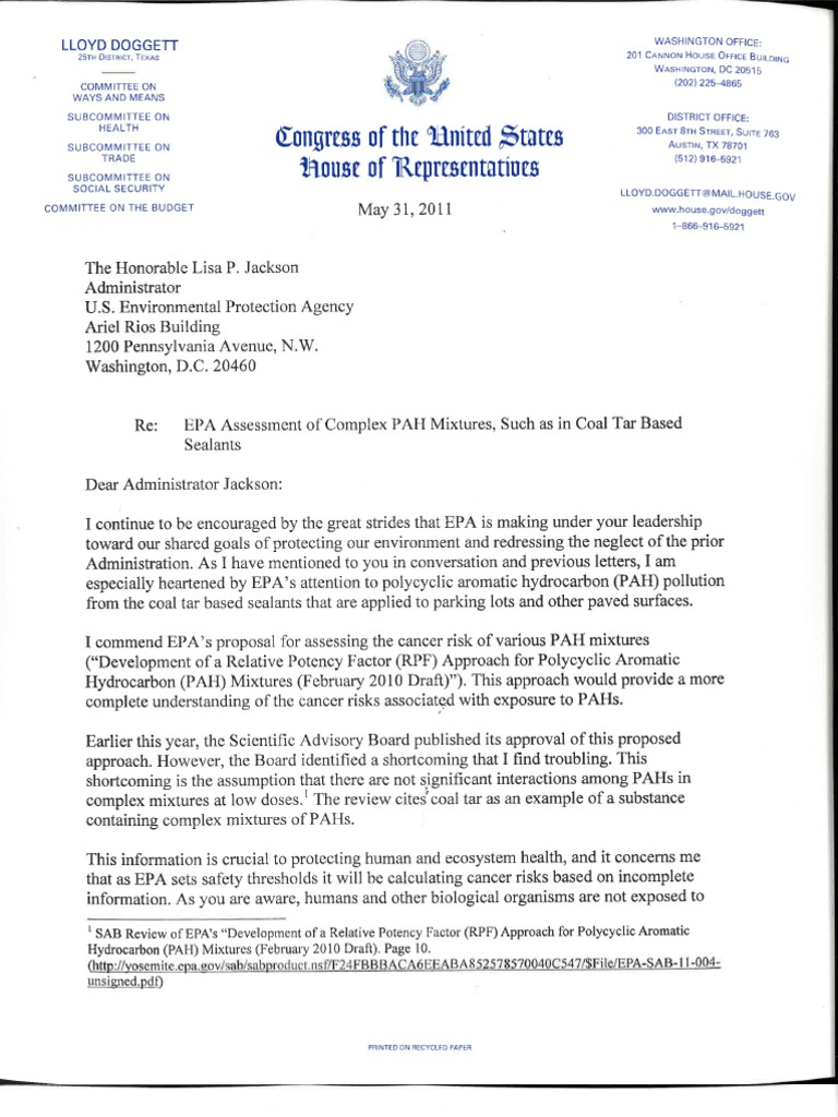 This is a letter dated May 31, 2011 from Congressman Lloyd Doggett to the EPA Administrator complimenting the EPA on environmental improvements, but challenging them to complete their work o…Full description