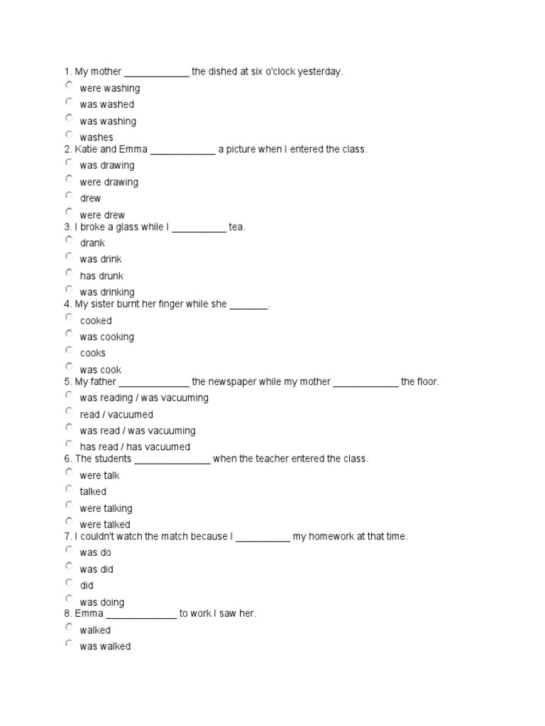 5. My father _____________ the newspaper while my mother ____________ the floor.