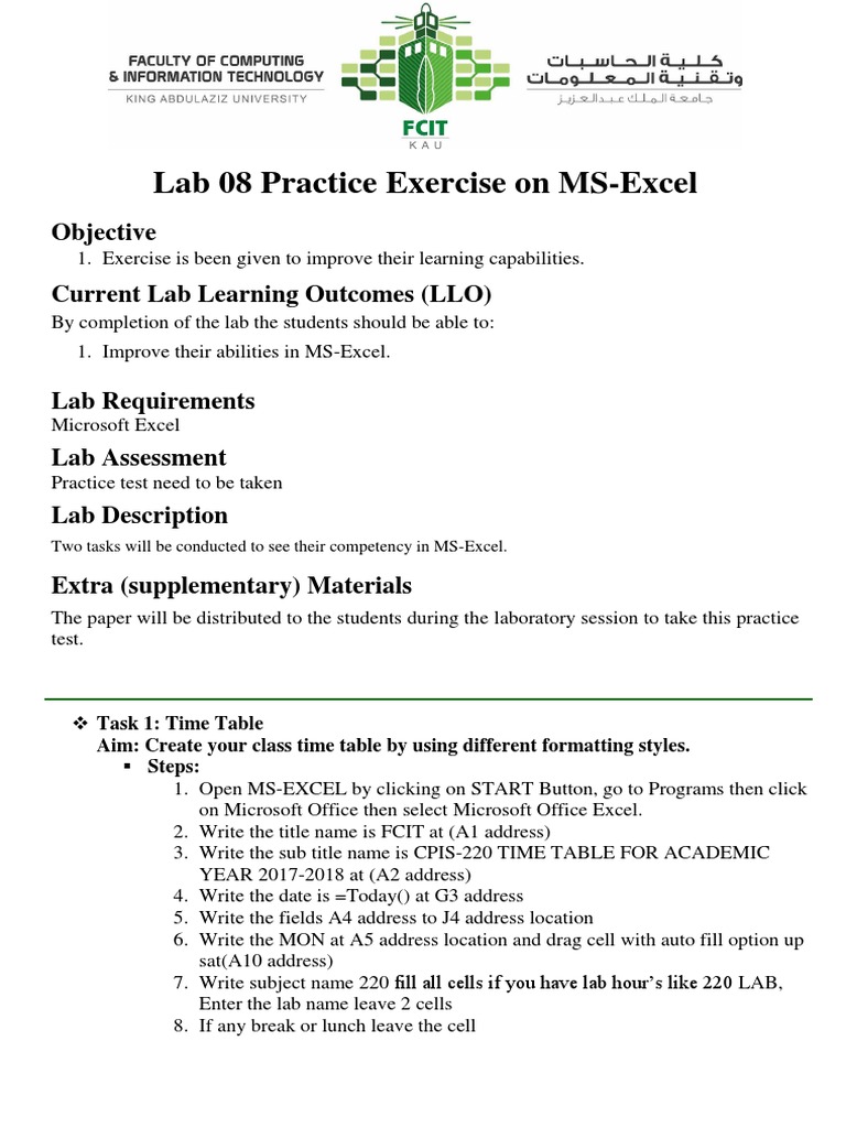 3. Write the sub title name is CPIS-220 TIME TABLE FOR ACADEMIC