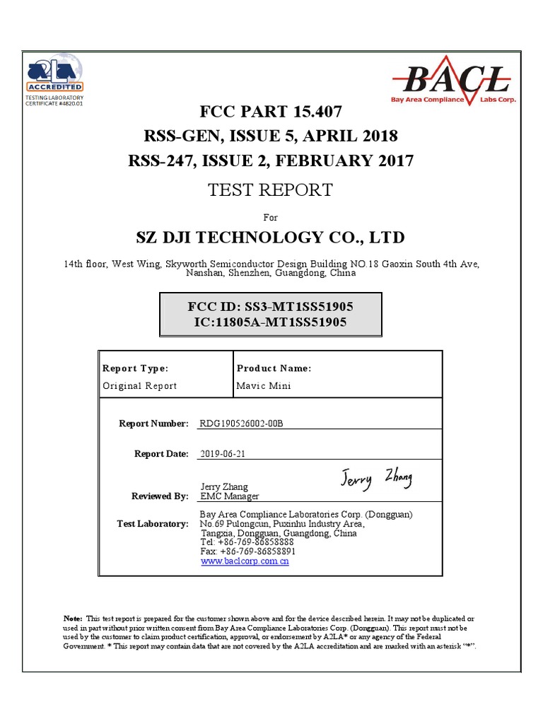 Mavic Mini FCC Test Report Summary
