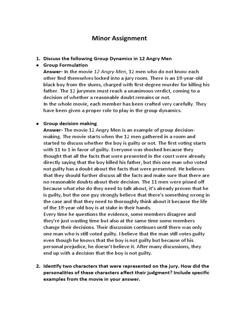 1. Discuss the following Group Dynamics in 12 Angry Men