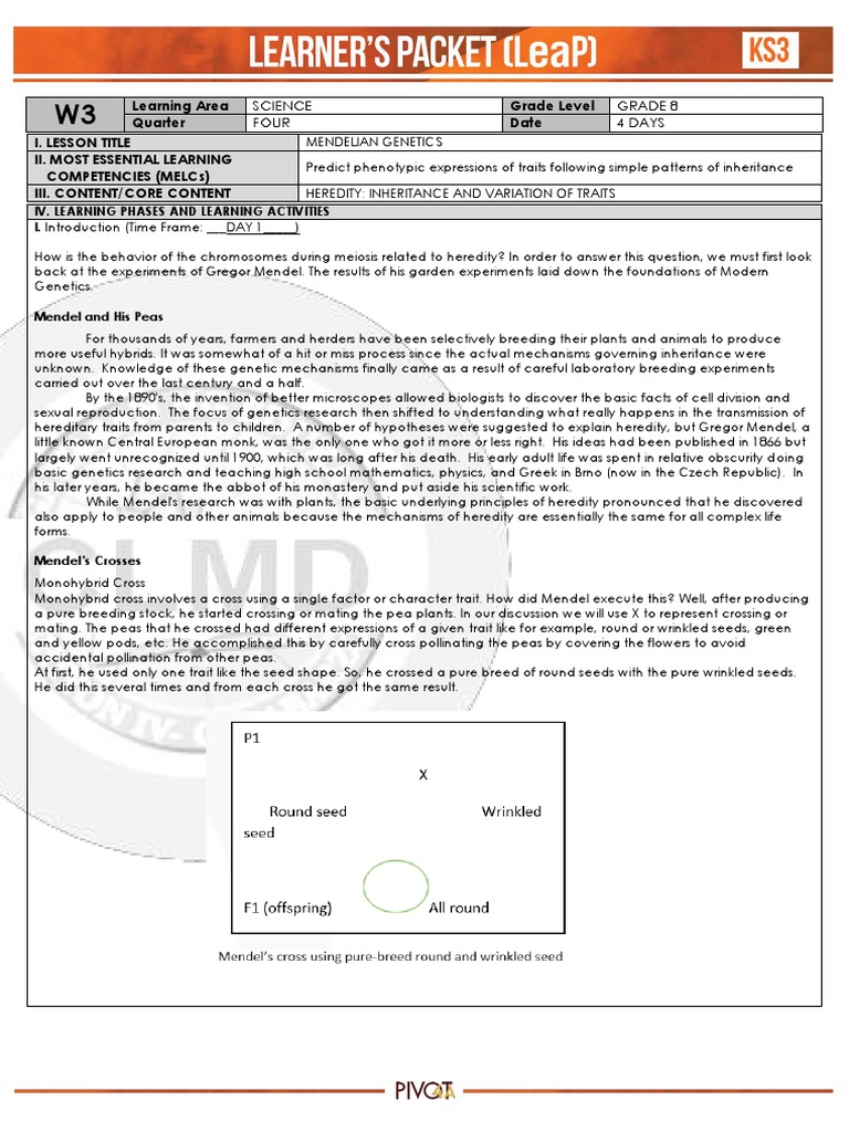 (Learning Activity Sheets for Enrichment, Remediation, or Assessment to be given on Weeks 3 and 6)