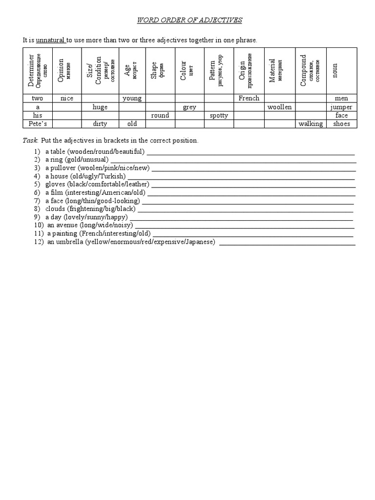 WORD ORDER OF ADJECTIVES