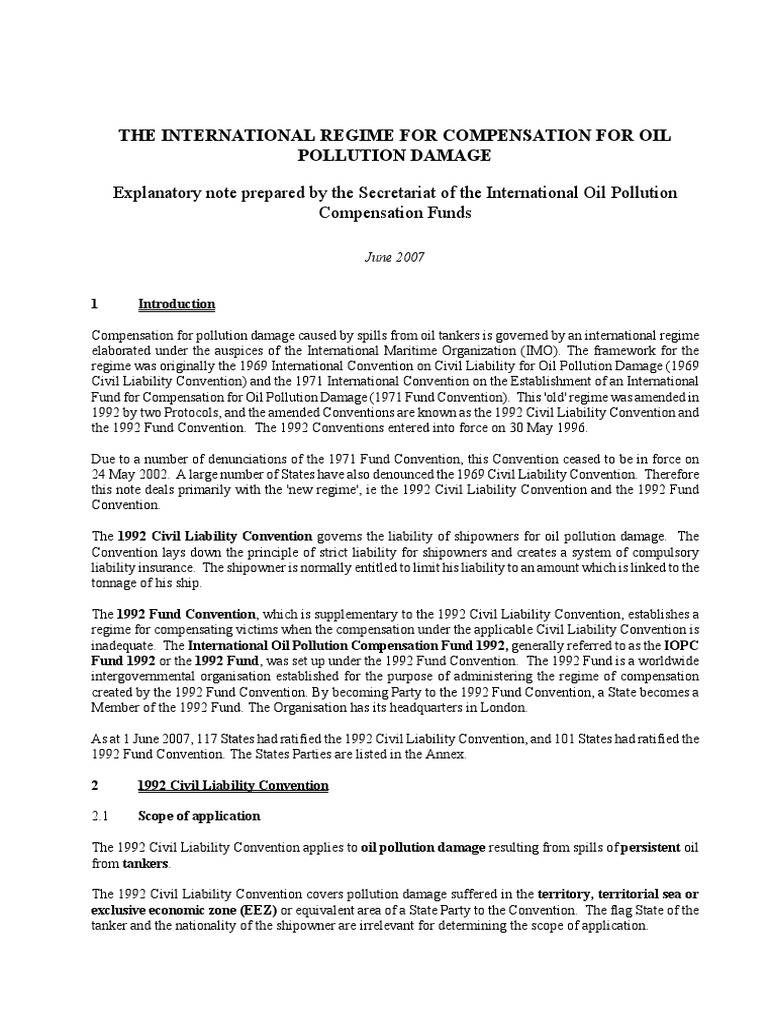 inadequate. The International Oil Pollution Compensation Fund 1992, generally referred to as the IOPC
