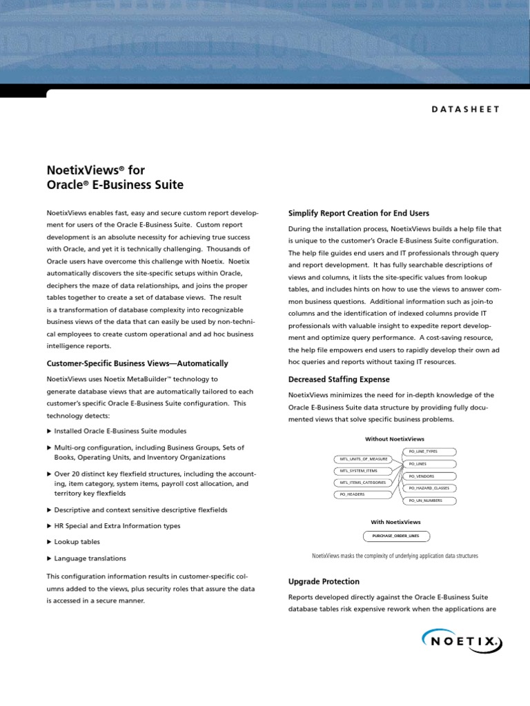 Includes more than 120 distinct views plus one view for each item ©2003 Noetix Corporation. All rights reserved. Noetix, NoetixViews and the Noetix