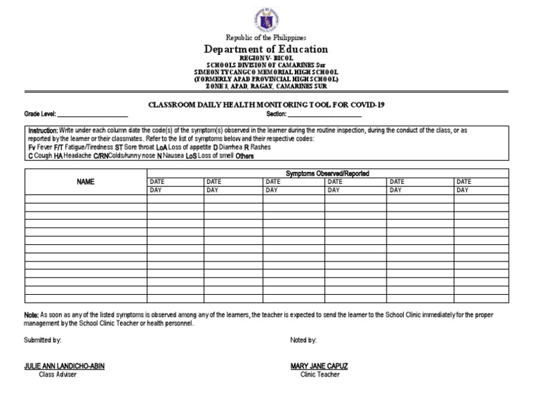 CLASSROOM DAILY HEALTH MONITORING TOOL FOR COVID-19