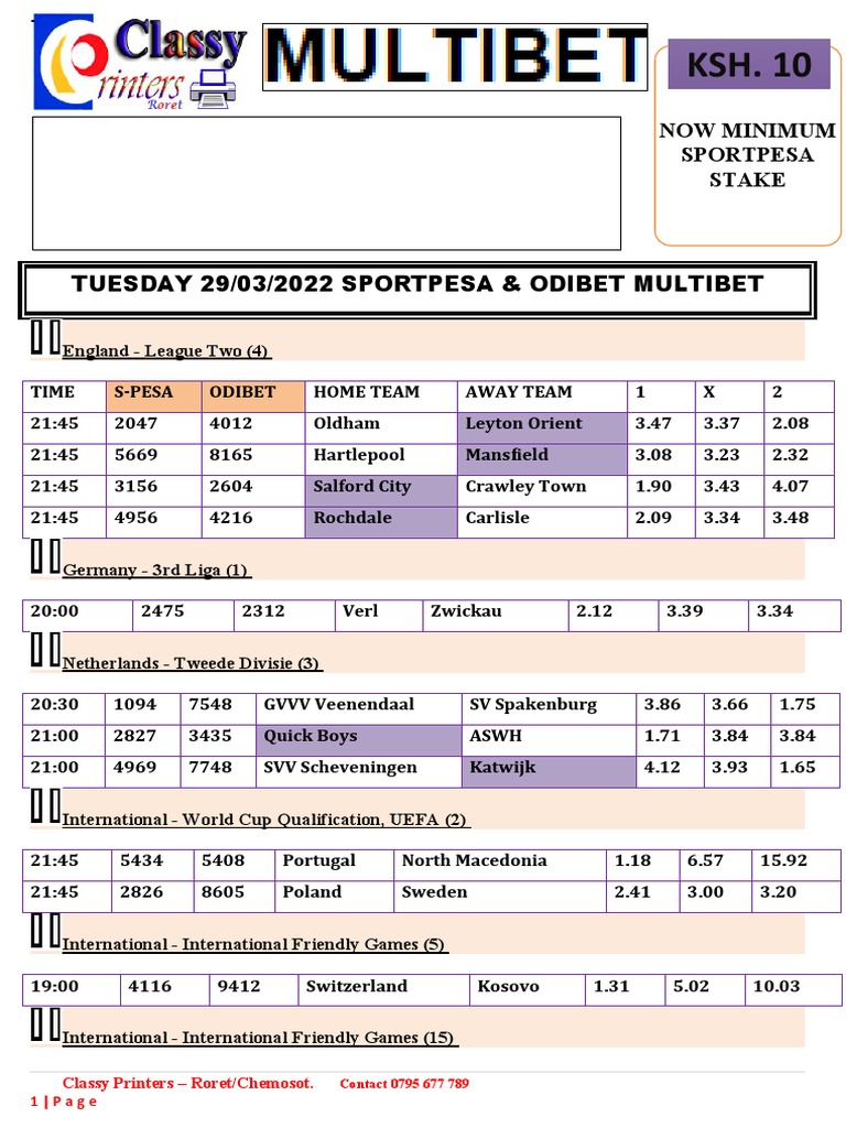 TUESDAY 29/03/2022 SPORTPESA & ODIBET MULTIBET