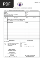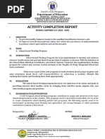 This document is an inspection and acceptance report for the school-based feeding program at Tagpangi Elementary School for the 2021-2022 school year. It was prepared by the feeding coordinator Ma. Anjanette R Mialdo and noted by the school head Clyde D. Talampas.