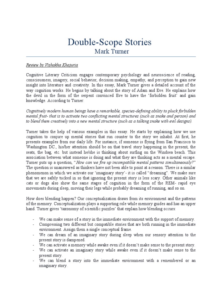 insight into literature and creativity. In this essay, Mark Turner gives a detailed account of the