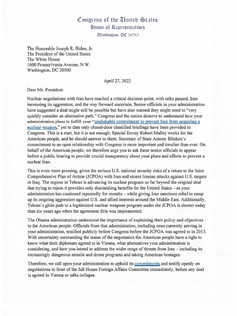 ‘administration plans to fulfill your “unshakable commitment to prevent Iran from acquiring 8
