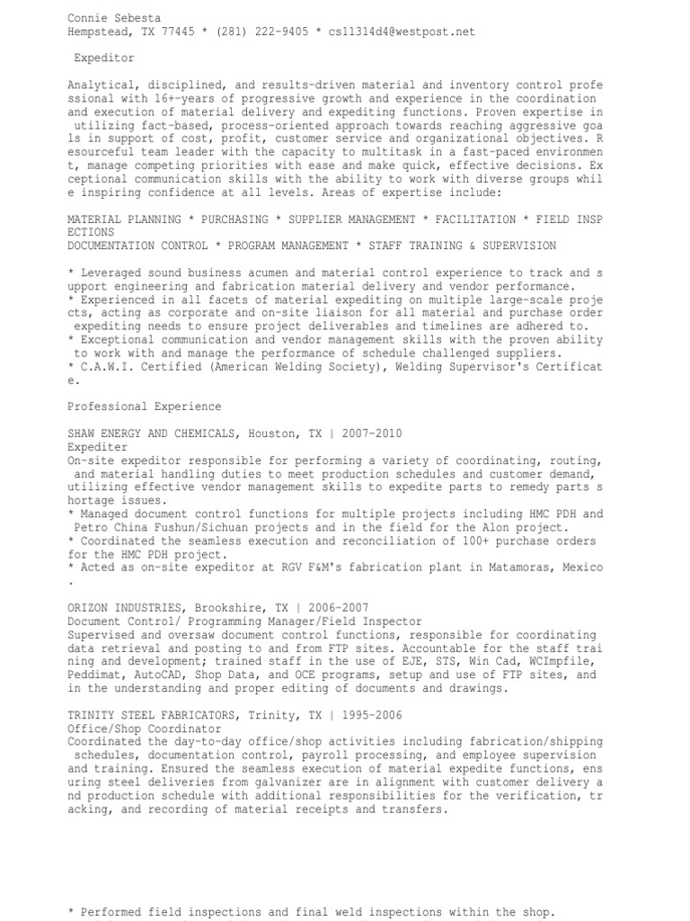 * Experienced in all facets of material expediting on multiple large-scale proje