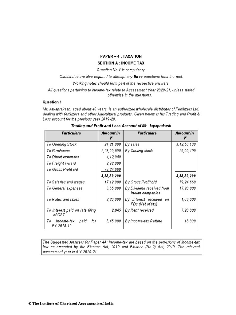 Paper - 4: Taxation Section A: Income Tax