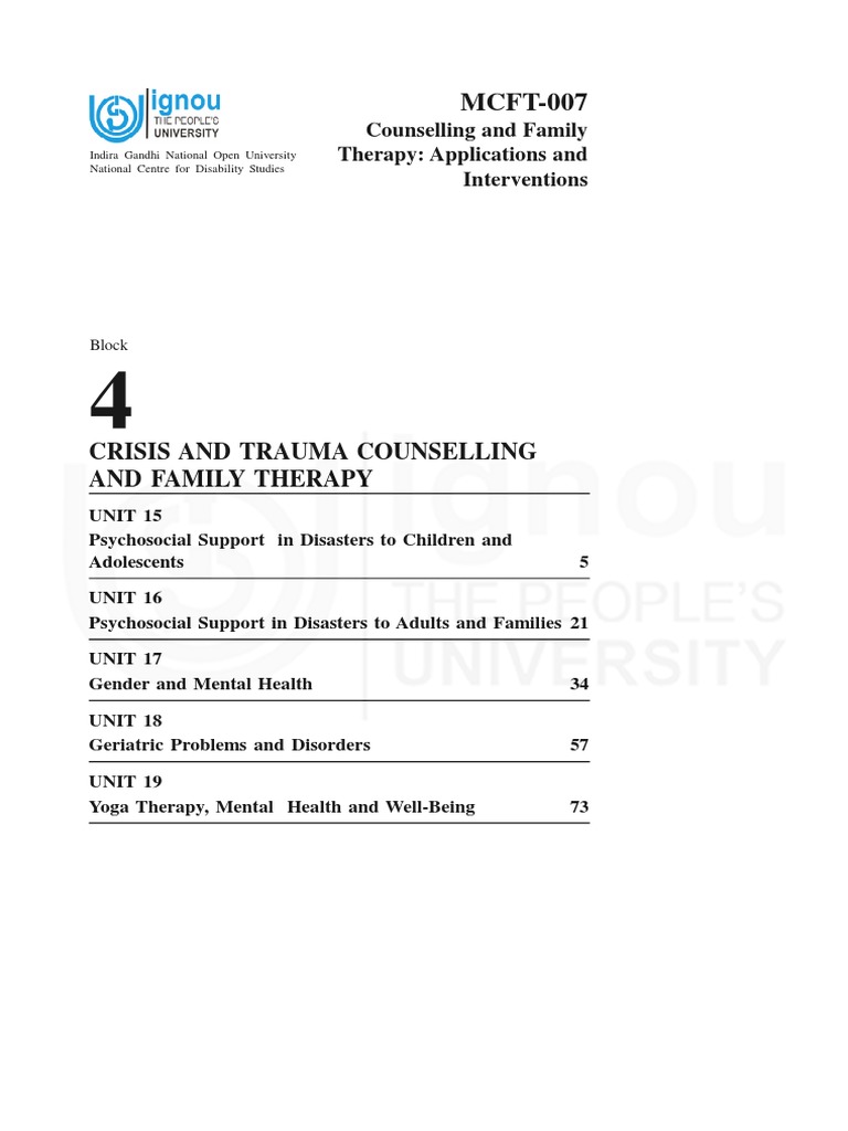 Block 4 : Crisis and Trauma Counselling and Family Therapy