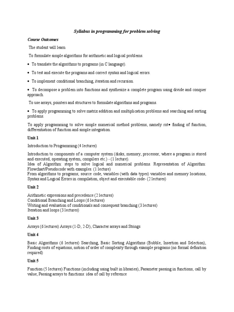 Arrays (6 lectures) Arrays (1-D, 2-D), Character arrays and Strings