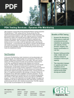 percentage of piles tested. This improves the overall quality assurance while reducing testing costs. Because of the large amount of dynamic testing performed, various codes and specifications are now in place for USA application. In 1986, the 04945 consensus standard was adopted by ASTM (American Society of Testing and Materials) for "High Strain Dynamic Testing of Piles" Testing in the USA follows these guidelines (ASTM D4945-96 is most recent revision). Beginning in the 1980's, the Federal Highway Administration offered a demonstration project for dynamic pile testing. They currently provide workshops for State highway agencies which includes dynamic methods as an important part of their recommendations. Many State highway agencies have developed their own specifications for use. Florida DOT bas probably the most extensive code and PDA is an integral part of their quality control procedures. AASHTO has general specification T298 (similar to but improved version of ASTM D4945). [n additional they recognize dynamic testing with its own reliability and benefit when assigning safety factors to foundations in the "AASHTO Standard Specifications for Highway Bridges". In general, higher levels of testing result in a lower safety factor. The US Army Corps of Engineers included dynamic testing in their 1993 manual on "Design of Pile Foundations". The American Society of Civil