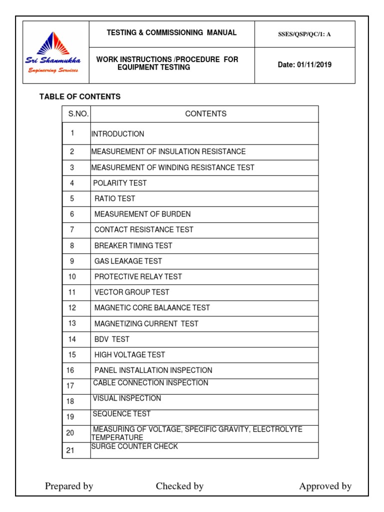 TESTING & COMMISSIONING MANUAL SSES/QSP/QC/1: A