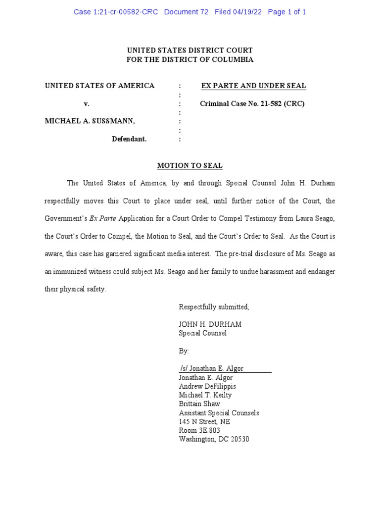 Government’s Ex Parte Application for a Court Order to Compel Testimony from Laura Seago,