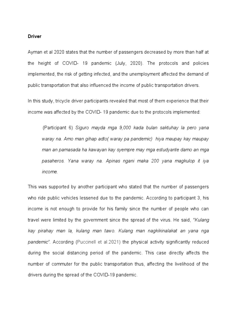 who ride public vehicles lessened due to the pandemic. According to participant 3, his