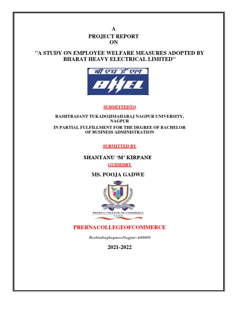 how BHEL can enhance the performance of employees by adopting better welfare measures. The study