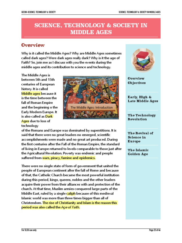 GEC08-SCIENCE, TECHNOLOGY & SOCIETY SCIENCE, TECHNOLOGY & SOCIETY IN MIDDLE AGES
