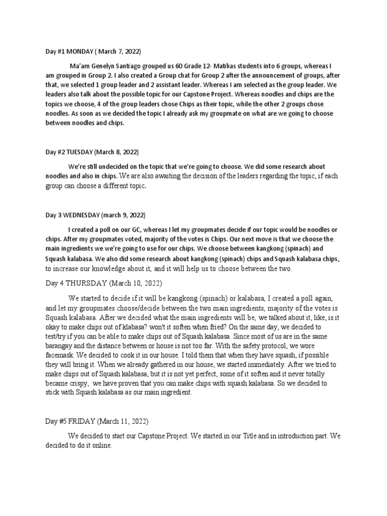 Day #1 MONDAY ( March 7, 2022)