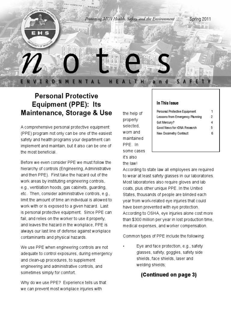 Equipment (PPE): Its In This Issue