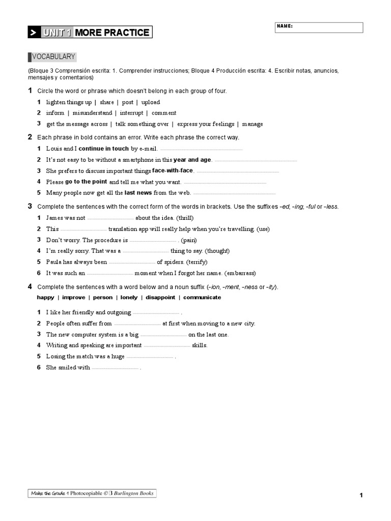 > UNIT 1 MORE PRACTICE