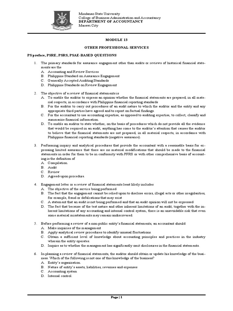 1. The primary standards for assurance engagement other than audits or reviews of historical financial state-