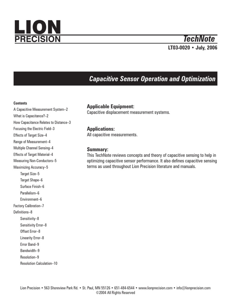 Effects of Target Material–4 This TechNote reviews concepts and theory of capacitive sensing to help in