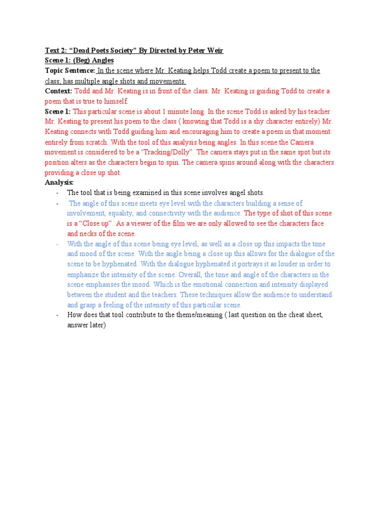 Text 2: “Dead Poets Society” By Directed by Peter Weir