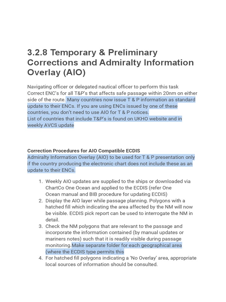Correction Procedures for AIO Compatible ECDIS