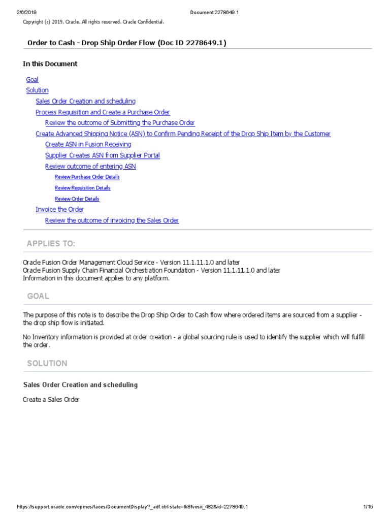 Order to Cash - Drop Ship Order Flow (Doc ID 2278649.1)