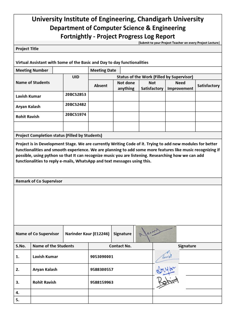 Fortnightly - Project Progress Log Report