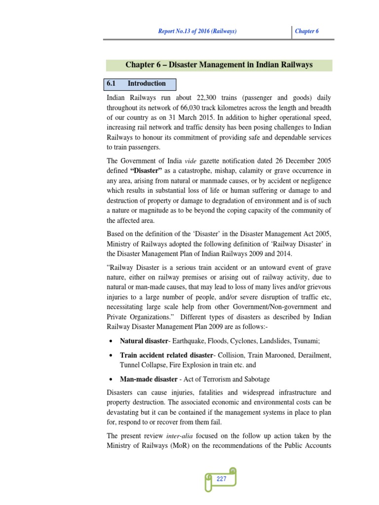 Chapter 6 – Disaster Management in Indian Railways