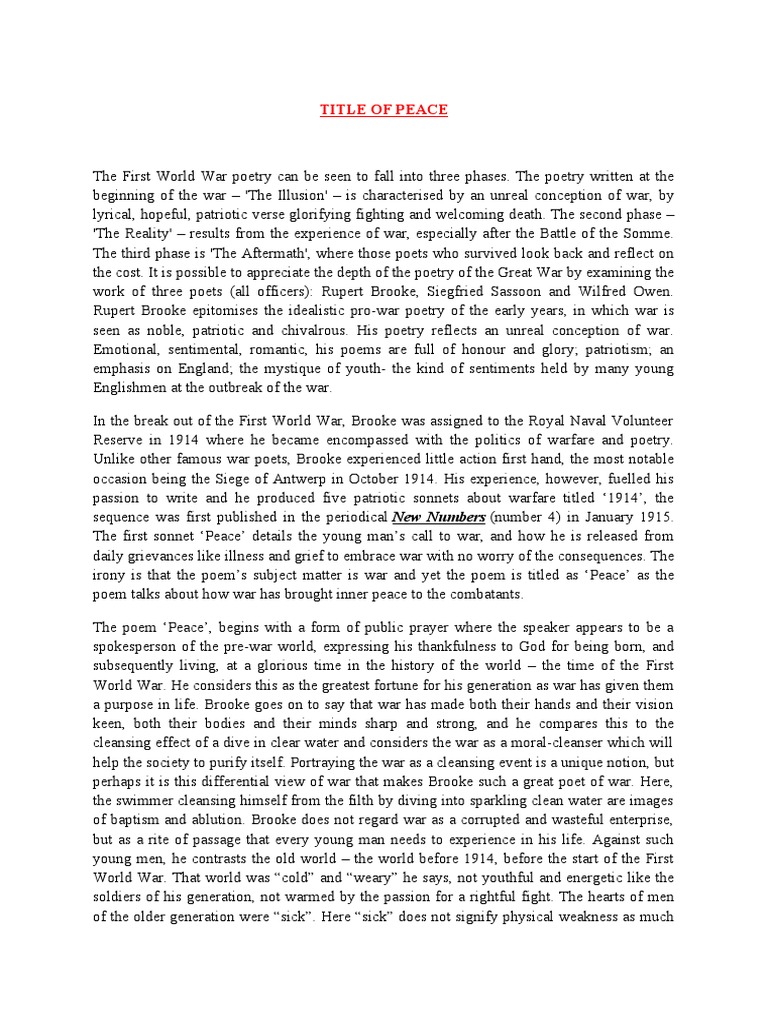 irony is that the poem’s subject matter is war and yet the poem is titled as ‘Peace’ as the