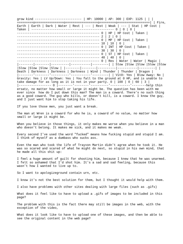 grow kind -------------------------- | HP: 10000 | AP: 300 | EXP: 1125 | | |