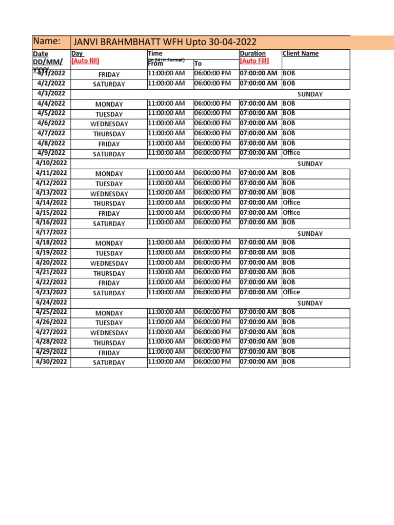 4/15/2022 FRIDAY 11:00:00 AM 06:00:00 PM 07:00:00 AM Office